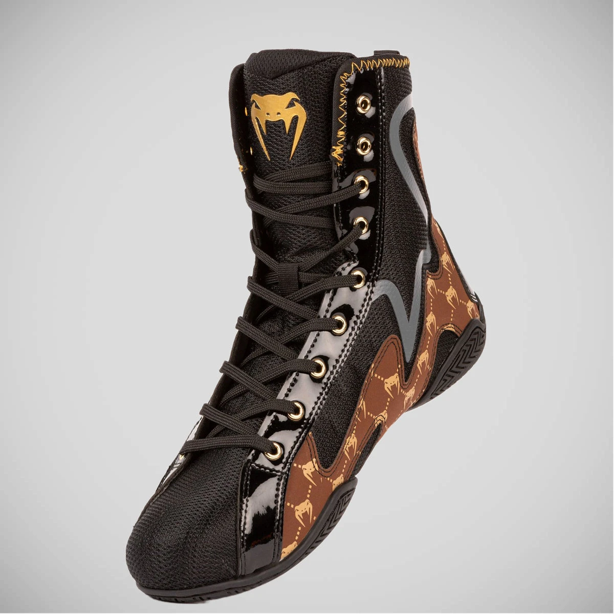 Introducing the Black/Brown Venum Elite Evo Boxing Shoes: Step into the ring with confidence and optimize your performance. Designed based on invaluable feedback from professional fighters, this new version has undergone significant enhancements to take your game to the next level. Brace yourself for a dynamic and exhilarating experience like never before.