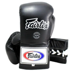 The Black Fairtex Mexican Lace-up Boxing Gloves is designed specifically for heavy punchers with double layers of high density latex foam padding