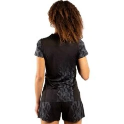 The Black Venum UFC Authentic Fight Week Women’s Dry Tech T-Shirt is a performance shirt specifically designed to meet the needs of world-class athletes. Its bi-material construction is flexible and durable, with the goal of maximum mobility and comfort regardless of the activity. Its technology aids the wicking of perspiration from the skin and allows the shirt to dry quickly. The Venum Fight Week Dry-Tech t-shirt is the result of a collaboration between Venum and the world’s leading mixed martial arts organization, the UFC.