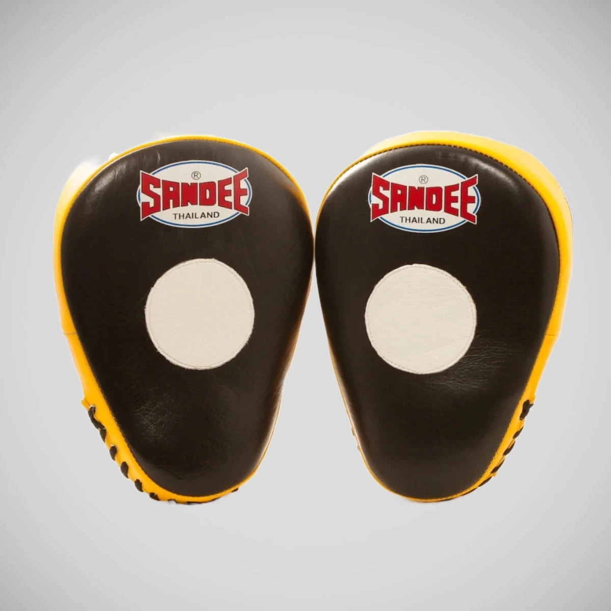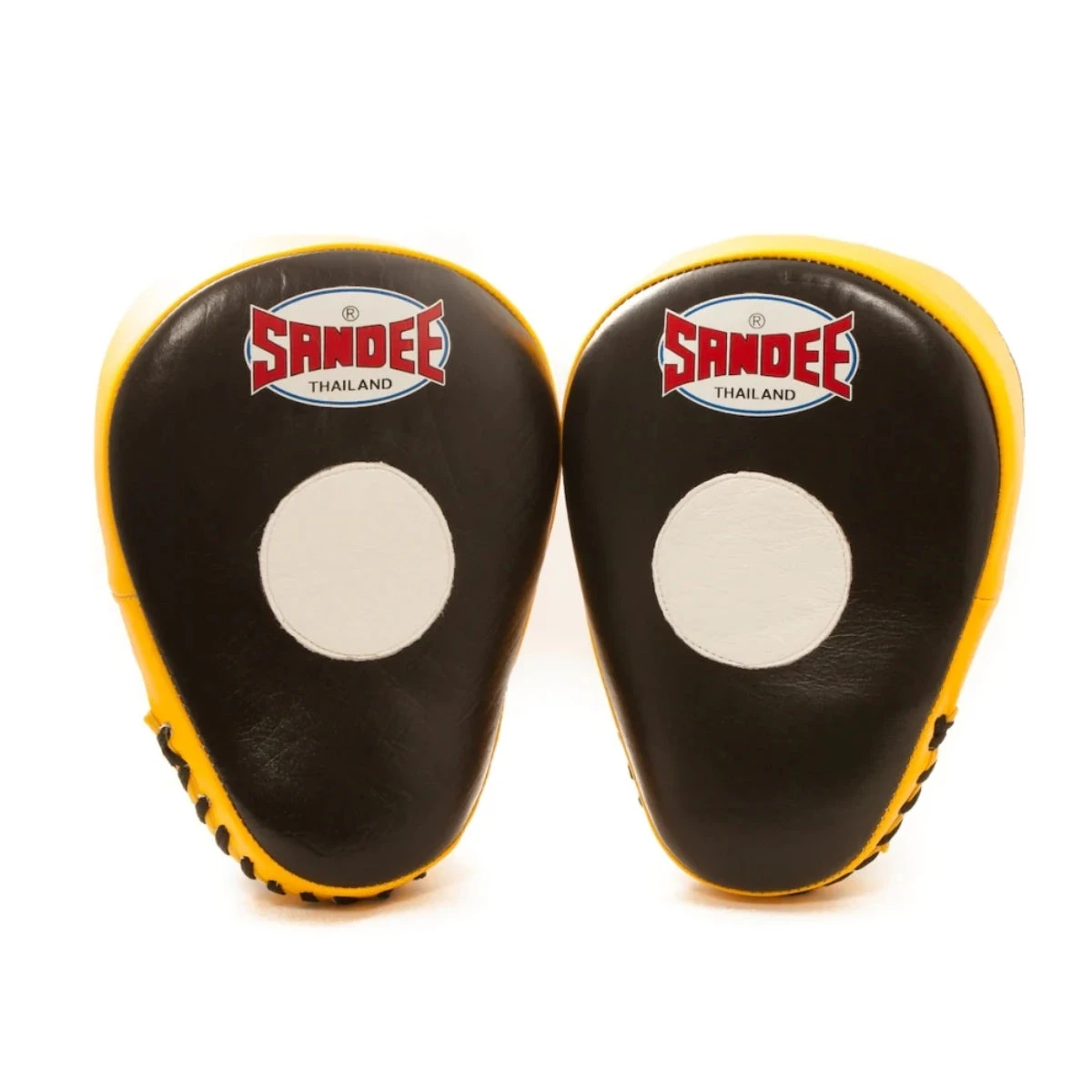 Get ready to elevate your training sessions with the Black/Yellow Sandee Leather Authentic Curved Focus Mitts! Designed for the fiercest fighters and passionate trainers in the world of martial arts and combat sports, these mitts are the ultimate choice to hone your skills and unleash your true potential.