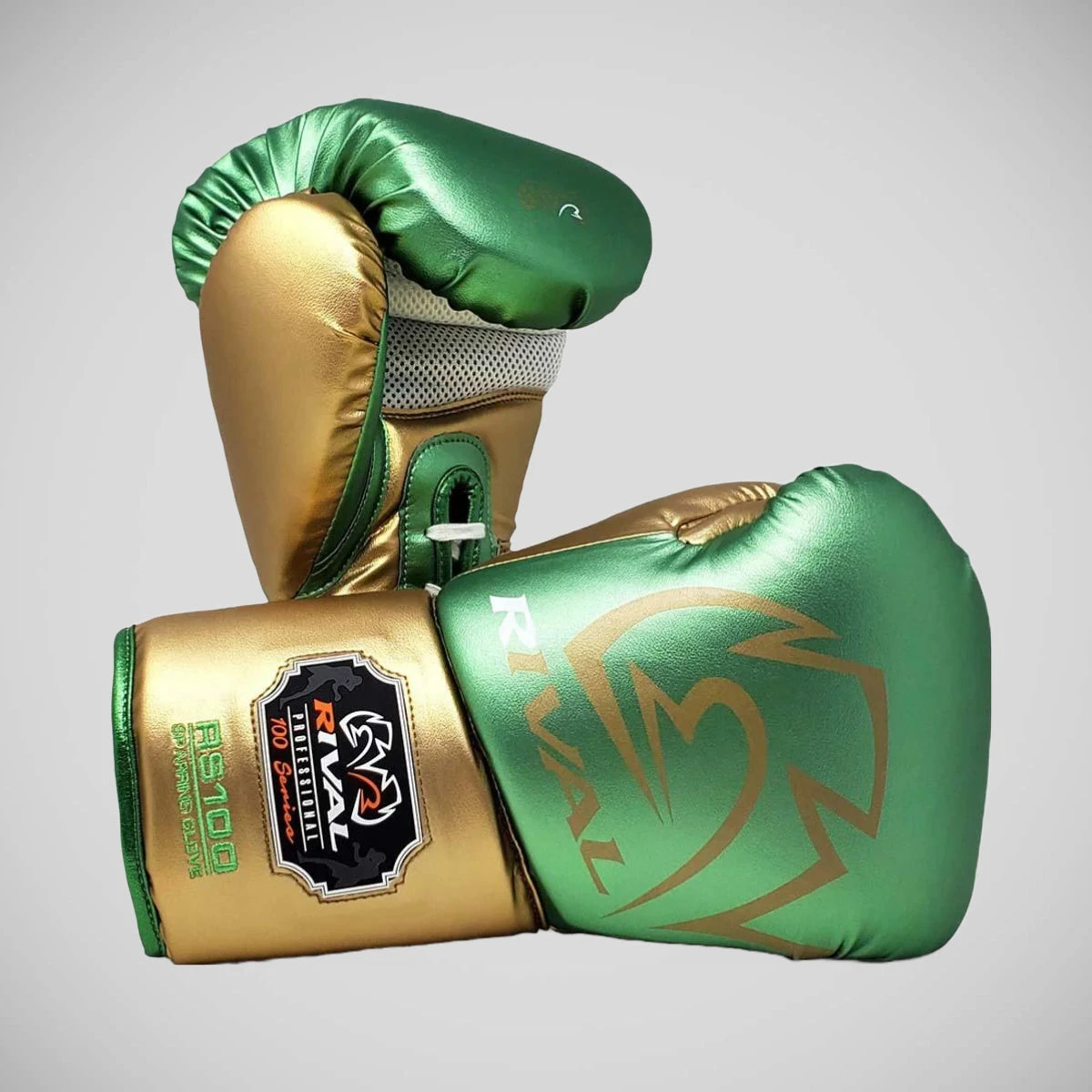 Introducing the Green/Gold Rival RS100 Professional Sparring Gloves – a masterpiece of ergonomic design meticulously crafted to provide the ultimate fit and performance for your hands.Â