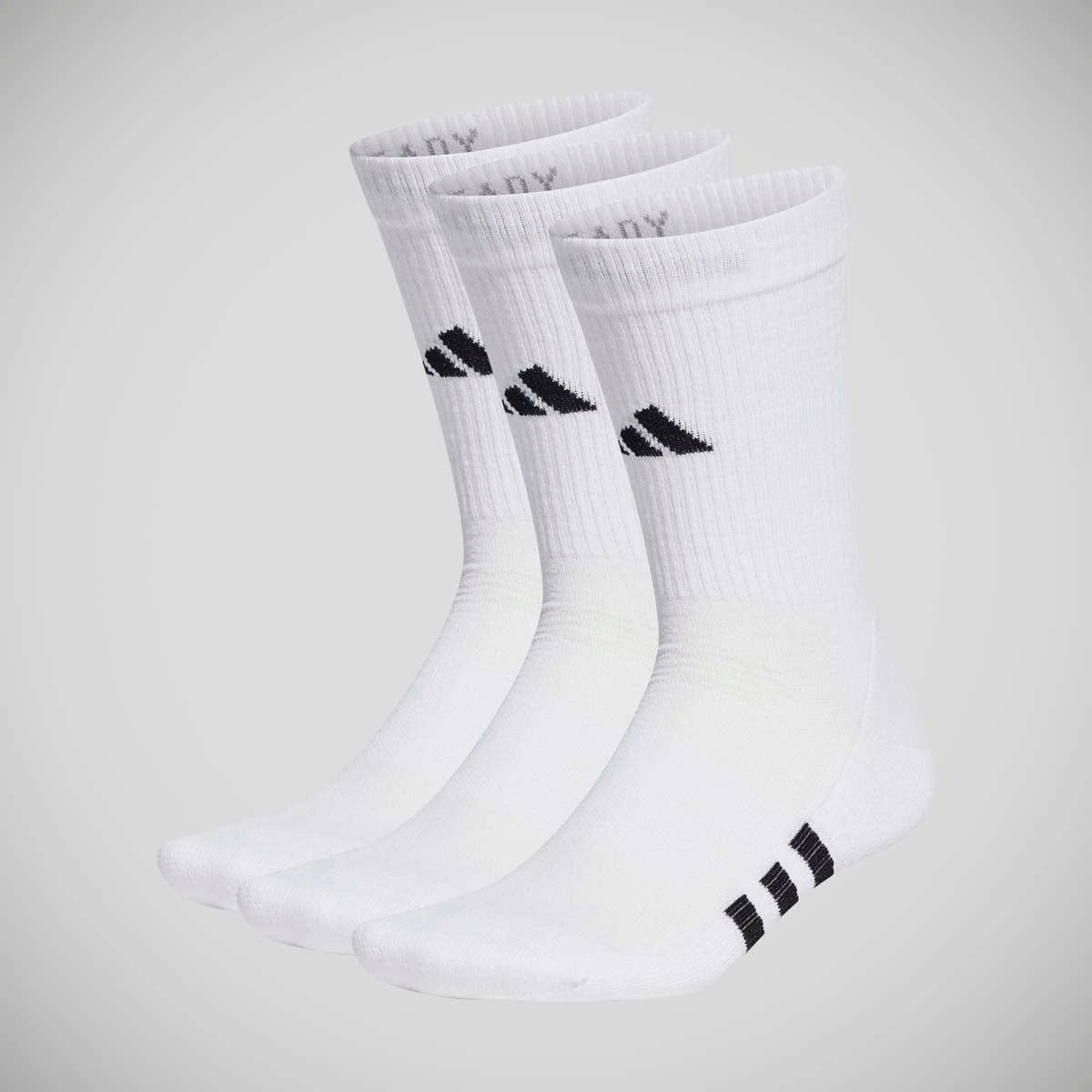 “So many details to keep you going strong all workout long. Pull on these crew socks and go all out. Mesh pieces keep the air flowing. Feel comfortable and dry, thanks to adidas AEROREADY. Flex zones where you need them and arch support mean you can move any way you want. Each pack includes three pairs of socks.