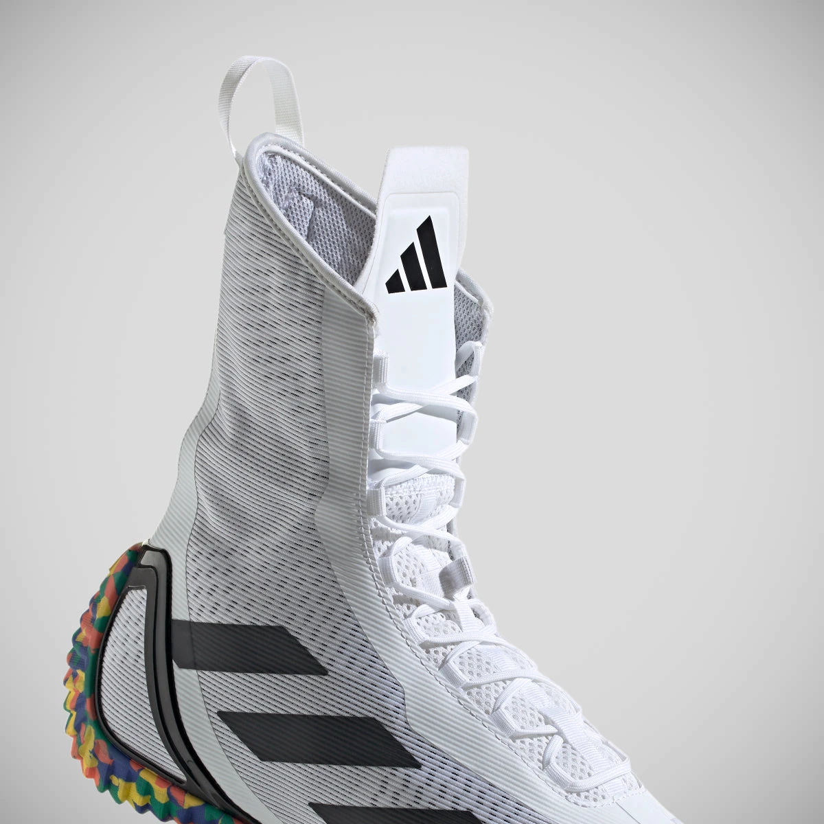 Lace-up with confidence in the White Adidas Speedex Ultra Boxing Boots. The lightweight, breathable mesh upper, coupled with a perforated EVA inner layer, ensures maximum comfort during intense workouts.