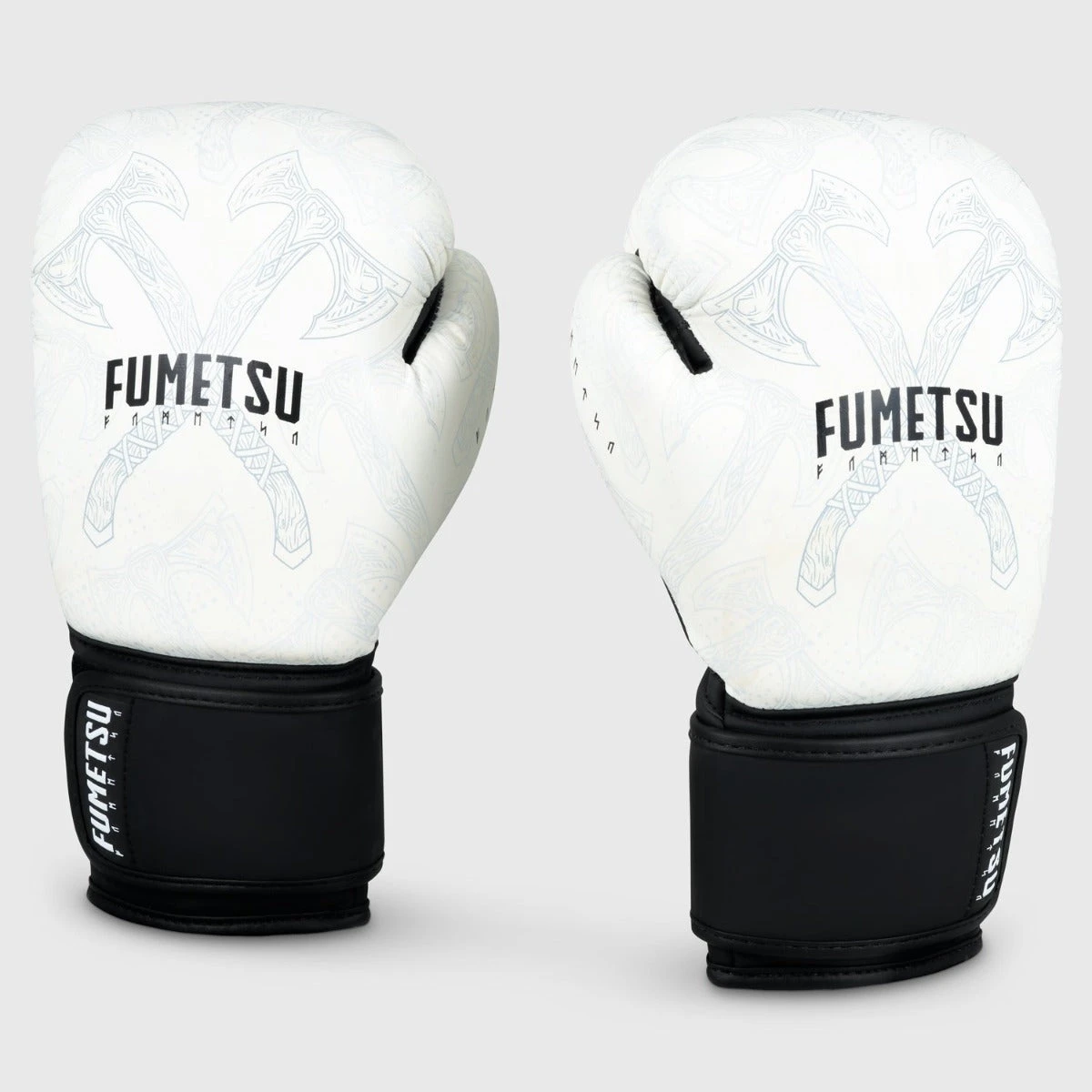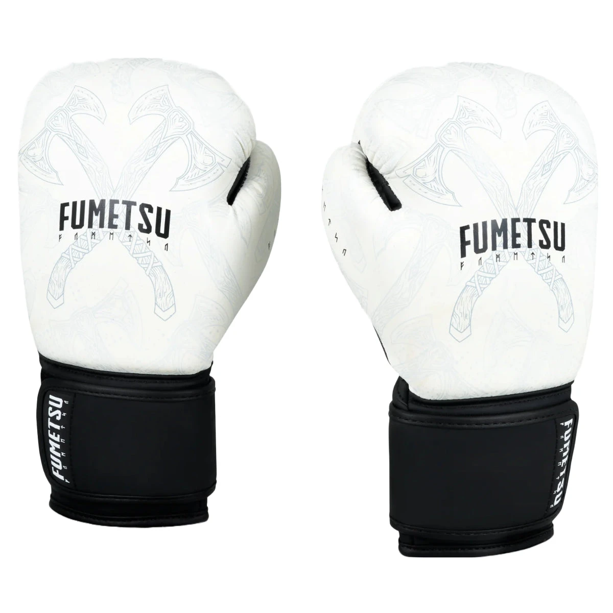 Get ready to dominate the ring with the White Fumetsu Berserker Boxing Gloves. Inspired by the fierce Norse Mythology it is adorned with hand-drawn artwork featuring dual Berserker axes, symbolizing your relentless power and determination. These gloves fuse exceptional craftsmanship with a captivating design.