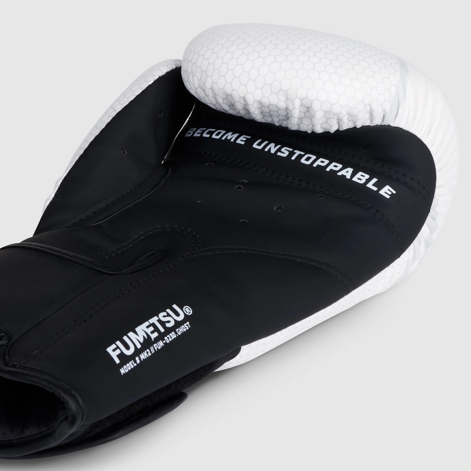 Brand new from Fumetsu! The White Ghost MK2 Boxing Gloves are the next generation in their popular Ghost Range. Made from premium synthetic leather with a breathable palm that will keep you cool and comfortable in training. Made to the same high standard that you expect from Fumetsu with an injection moulded core.