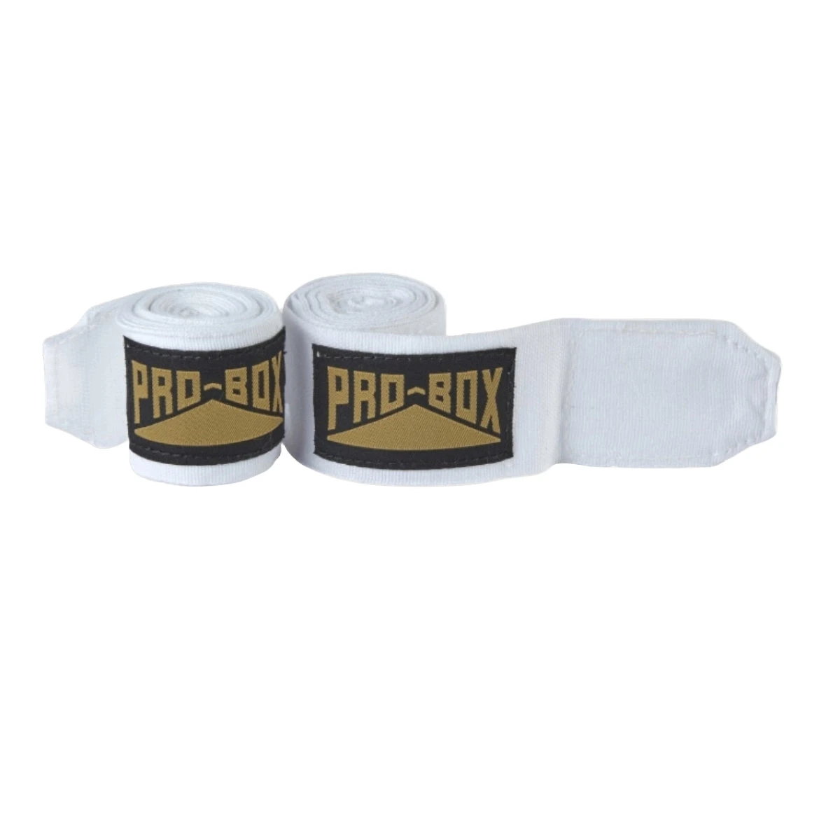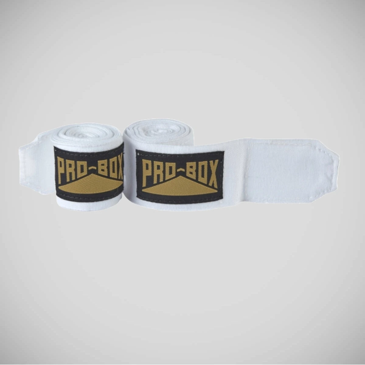 Protect your hands from serious injuries with the White Pro-Box Senior AIBA Spec Stretch Hand Wraps.Â